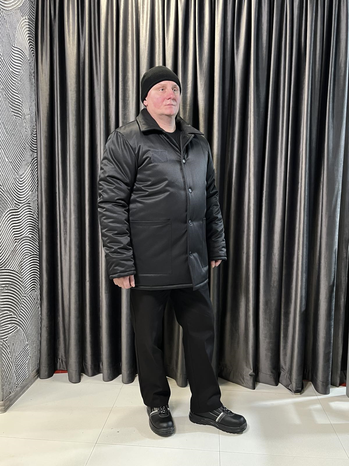 Куртка прямого силуэта , без усложняющих элементов, 2 кармана "листочка". Материал может быть как заказчика, так и ателье. Мы используем "Могилевскую грету" . Внутри изделия синтепон.