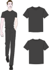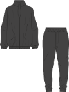 Костюм состоит из куртки и брюк. Куртка прямого силуэта с отложным воротником и супатной застежкой на пуговицах. Имеет накладные карманы с клапанами: два нагрудных и два боковых. Рукав прямой.